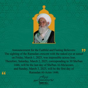 Ramadhan 2025 Announcement for the Faithful and Fasting Believers: The sighting of the Ramadan crescent with the naked eye at sunset on Friday, March 1, 2025, was impossible across Iran.…